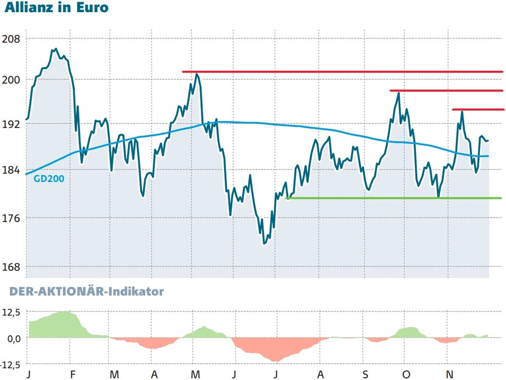 Aus technischer Sicht gibt es bei der Allianz nichts zu mäkeln. Mit dem Sprung über die 200-Tage-Linie hat die Aktie jüngst ein Kaufsignal generiert. Zudem drehte der AKTIONÄR-Indikator erst vor Kurzem wieder in den grünen Bereich. Dadurch hat die Allianz ein Anschlusspotenzial bis 194 respektive 197,50 Euro freigesetzt. Weitere Widerstände liegen bei 201 und 205,75 Euro.