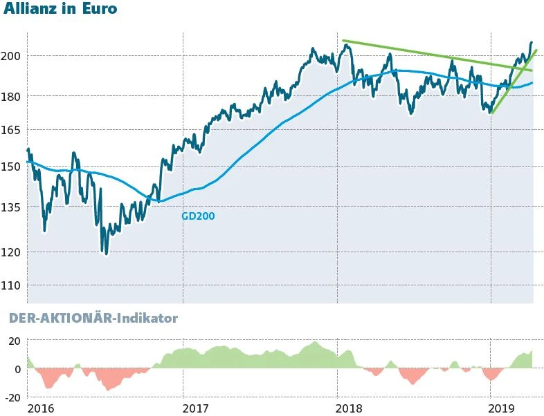 Beflügelt von der Aufwärtsbewegung des DAX hat auch die Allianz einen Zahn zugelegt und nach dem Sprung über die 200-Tage-Linie das 16-Jahres-Hoch bei 206,85 Euro übersprungen. Nun ist der Weg nach oben erst einmal frei.