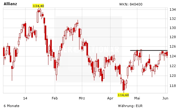 Zuletzt hatten bereits die Experten des US-Bankenriesen JPMorgan die Aktie der Allianz näher unter die Lupe genommen. Auch sie waren der Ansicht, dass der Titel weiterhin ein Kauf bleibt. Die JPMorgan-Analysten trauen der Allianz-Aktie allerdings etwas mehr zu. Sie sehen das Kursziel bei 152 Euro. Auch DER AKTIONÄR bleibt zuversichtlich gestimmt. Die DAX-Titel sind aktuell immer noch günstig bewertet und sind auch aus charttechnischer Sicht wieder sehr interessant. Gelingt der nachhaltige Sprung über die Marke von 125 Euro, dürfte die Allianz-Aktie in Richtung des Jahreshochs bei 134,40 Euro marschieren. Die Papiere bleiben ein Kauf, der Stopp sollte bei 115 Euro und damit knapp unter dem Tagestief belassen werden.