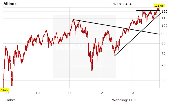 Auch DER AKTIONÄR rät weiterhin zum Kauf der Allianz-Aktie. Die Bewertung des größten europäischen Versicherers ist immer noch günstig (KGV: 9; KBV: 1,1; Dividendenrendite: 4,2 Prozent) und auch aus charttechnischer Sicht sind die DAX-Titel ein Kauf. Der Stopp sollte bei 96,00 Euro belassen werden.