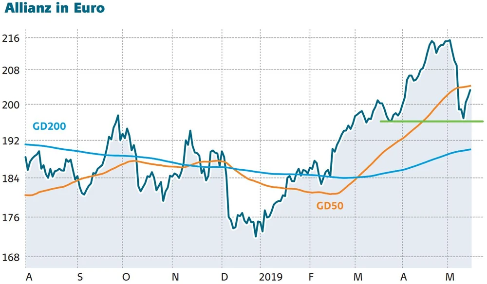 Die Allianz hatte von ihrem Hoch bei 216,20 rund zehn Prozent abgeben müssen, wobei ein Teil auf die Dividendenauszahlung zurückzuführen ist. Einen Teil dieser Verluste hat die Aktie schon wieder aufgeholt, und es dürfte keine Ewigkeit dauern, bis die Jahreshochs wieder erreicht werden. Langfristig bleibt die Allianz ein Top-Investment.