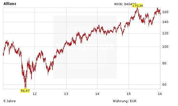 Die Analysten den Deutschen Bank haben heute ihre Einschätzung von "Hold" auf "Buy" angehoben und gleichzeitig das Kursziel von 170 auf 190 Euro hochgesetzt. DER AKTIONÄR hält ebenfalls an seiner Kaufempfehlung für die Allianz-Aktie fest. Mit einem KGV von 10, einem KBV von 1,1 und einer Dividendenrendite von 4,7 Prozent ist der Qualitätstitel ein wahres Schnäppchen. Der Stoppkurs sollte bei 133 Euro belassen werden.