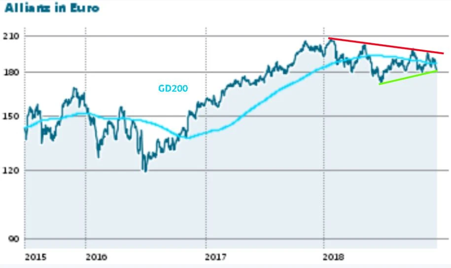 Die Talfahrt bei der Allianz geht weiter. Aktuell ringt die Aktie mit der 180,00 Euro Marke. Dort liegt auch eine wichtige Unterstützung. Fundamental ist die Aktie mit einem KGV von zehn günstig bewertet. Als Schmankerl oben drauf gibt es eine Dividendenrendite von 4,4 Prozent.