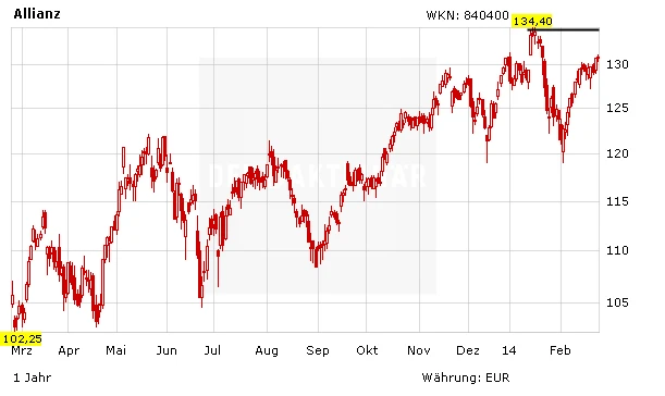 Die Allianz-Aktie ist mit einem 2014er-KGV von 10 und einer Dividendenrendite von vier Prozent günstig bewertet. DER AKTIONÄR sieht das Kursziel für die Aktie bei 160 Euro. Der Stopp sollte bei 115 Euro gesetzt werden.