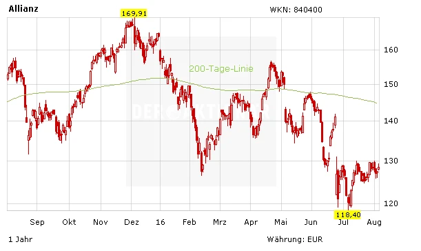 Die jüngste Investition in New York zeigt, dass der Konzern in Zeiten von Niedrigzinsen auf den Anleihemärkten intelligent agiert und immer noch aussichtsreiche Immobilienprojekte findet. Sollten die morgigen Zahlen besser als erwartet ausfallen, dürfte ein Kaufsignal nur noch eine Frage der Zeit sein. Hierzu müsste der mittelfristige Abwärtstrend bei 134,00 Euro geknackt werden. Fundamental ist die Allianz mit einem KGV von neun und einer Dividendenrendite von 5,7 Prozent attraktiv bewertet. Investierte Anleger geben kein Stück aus der Hand.