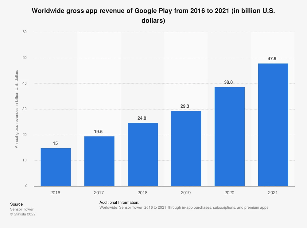 Alphabet-Anlegern könnte die Einführung eines zusätzlichen Zahlungssystems sauer aufstoßen, da es die Milliardenumsätze aus dem Play Store schmälern dürfte. Laut den Daten von SensorTower dürften im Play Store mit Bezahl-Apps, Abonnements und In-App-Käufen im vergangenen Jahr rund 47,9 Milliarden Dollar umgesetzt worden sein.