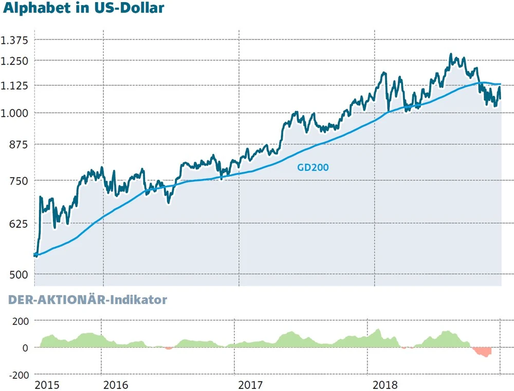Riesenpotenzial für Alphabet – das jedoch noch weit entfernt liegt. Zudem dürfte die Konkurrenz hart werden. Das Versandhaus Amazon testet ebenfalls Drohnen-Lieferungen. Doch das Engagement in den Moonshots zeigt Anlegern, dass Alphabet viel mehr ist als das Werbekerngeschäft. Und was treibt die Kurse mehr als eine technologische Zukunftsphantasie.