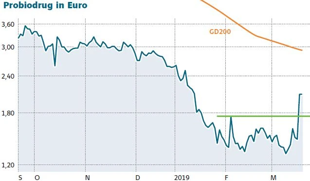 Was für ein Kurssprung: Nachdem die Aktie von Probiodrug in den vergangenen Monaten förmlich nach unten durchgereicht wurde, meldet sich der Wert am heutigen Mittwoch mit einem deutlichen Kurssprung zurück. Fast 39 Prozent geht es nach oben auf zwei Euro. Grund für den massiven Kursanstieg ist die Meldung, dass Probiodrug und die Alzheimer's Disease Cooperative Study (ADCS) von der US-Gesundheitsbehörde NIH (National Institute of Health) bei einem US-Phase-2b-Studienprogramm unterstützt wird. Die Förderung erfolgt im Rahmen eines Forschungsprojekt (R01) von rund 15 Millionen US-Dollar über einen Zeitraum von vier Jahren, heißt es in einer Mitteilung von Probiodrug. Ziel des Programms sei es, die Wirksamkeit und Sicherheit von Probiodrugs Wirkstoff PQ912 bei Patienten mit leichter kognitiver Beeinträchtigung (MCI) oder leichter Demenz aufgrund ihrer Alzheimer-Erkrankung zu untersuchen.