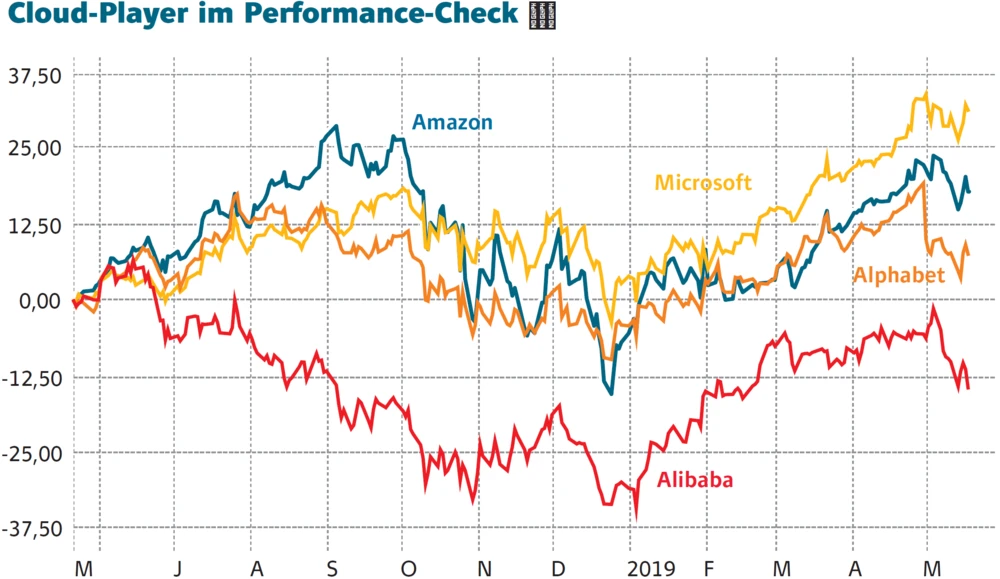 DER AKTIONÄR setzt unverändert auf den Cloud-Markt und die Aktien der führenden Player Amazon, Microsoft, Alphabet oder Alibaba. Auch wenn die China-Aktie Alibaba aufgrund des Handelsstreits aktuell deutlich underperformt.