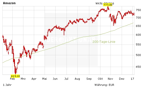 Der Dezember war nach den vorangegangenen Monaten für die Amazon-Aktie ein vergleichsweißer ruhiger Monat. Sie bewegte sich in der Range zwischen 750 und 775 Dollar. Anleger lassen die Gewinne laufen.