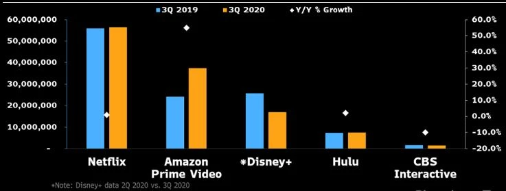 Zwar bleibt Netflix Platzhirsch beim Streaming, doch Amazon Prime legte im dritten Quartal mit knapp 38 Millionen App-Downloads außergewöhnlich stark zu. Im dritten Quartal 2019 hatten lediglich 27 Millionen Kunden die App heruntergeladen.