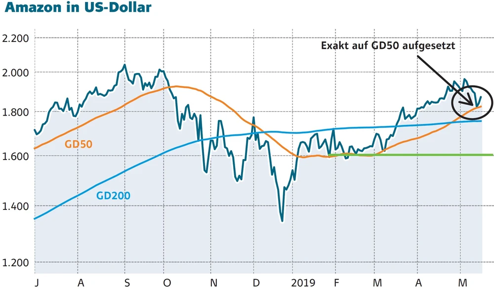 Es war knapp, aber es ging noch mal gut: Die Amazon-Aktie hat exakt auf der bedeutenden 50-Tage-Linie aufgesetzt und nach oben gedreht. Vorerst ist damit alles in Ordnung.