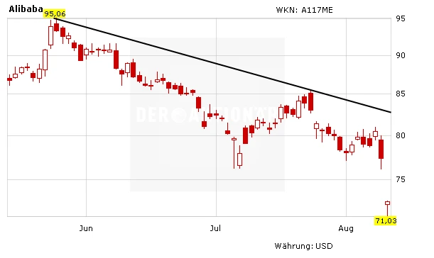Die Quartalszahlen konnten Alibaba keinen positiven Impuls geben. Die am Mittwoch veröffentlichten Daten enttäuschten die Anleger. Der Kurs verlor an der Frankfurter Börse mehr als sieben Prozent und im vorbörslichen US-Handel über fünf Prozent. Vor allem das Wachstum blieb hinter den Erwartungen zurück.