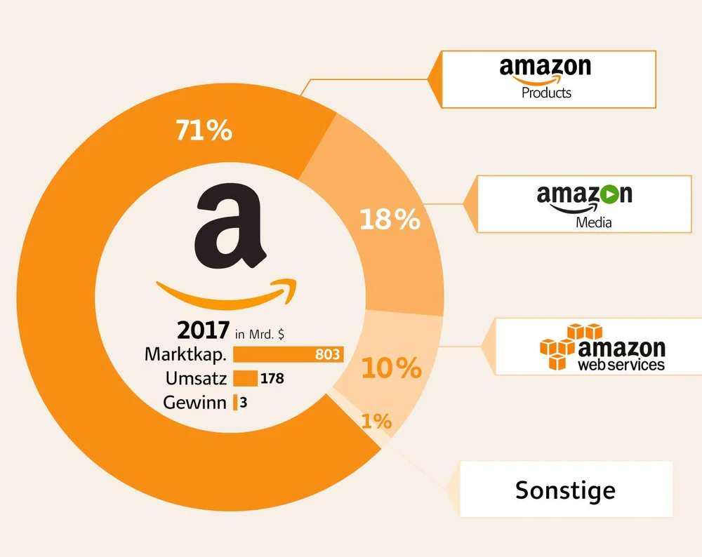 Jeff Bezos‘ Amazon wächst seit Jahren wie kaum ein anderes Unternehmen auf der Welt. Erzielte der Konzern im ersten Quartal 2008 gerade einmal einen Umsatz von vier Milliarden Dollar, waren es im dritten Quartal 2018 57 Milliarden Dollar. Nach wie vor ist Amazon stark abhängig von seinem Kerngeschäft. Macht aber nichts.