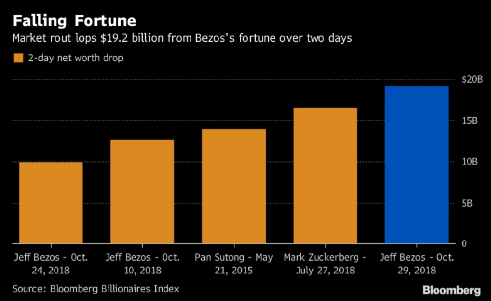 Insgesamt hat Bezos im Oktober 42 Milliarden Dollar verloren.