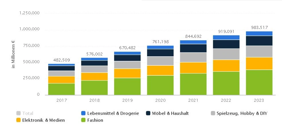 Gelingt dem Konzern doch der Durchbruch, wartet auf Amazon ein riesiges Potenzial: Die Marktforscher von Statista erwarten, dass der E-Commerce-Markt bis 2023 auf knapp eine Billion Dollar steigen wird.