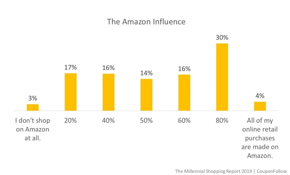 Zwei Drittel der jungen Leute erledigen 50 Prozent ihrer Online-Einkäufe bei Amazon. 30 Prozent bestellen sogar 80 Prozent der benötigten Waren bei dem E-Commerce-Giganten.