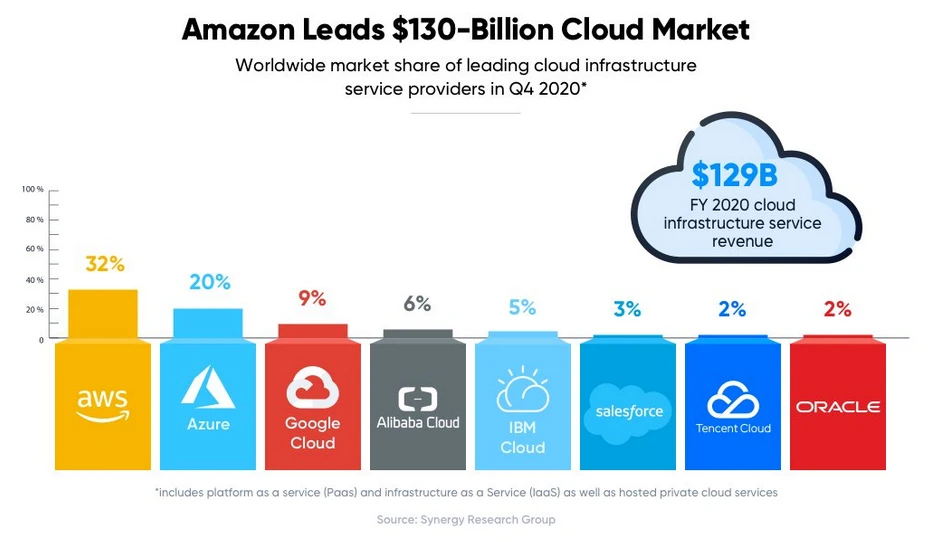 Laut Synergy Research hatte AWS auf dem IaaS-Markt Ende 2020 jedoch noch einen ordentlichen Vorsprung gegenüber Azure. Doch Microsoft holt auf und hat sich auf einen Marktanteil von rund 20 Prozent hochgearbeitet.