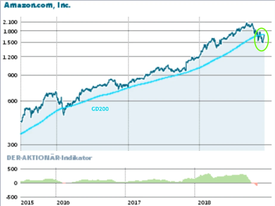 Am Markt lösten die Worte Powells Begeisterung aus. Besonders gefragt: Amazon. Die Aktie des E-Commerce-Giganten kletterte um sechs Prozent auf 1.677,75 Dollar. Das Chartbild hat sich damit deutlich verbessert: Der Kurs kratzt nun an der bedeutenden 200-Tage-Linie, die aktuell bei 1.695,15 Dollar verläuft. Wird dieser Widerstand nachhaltig gebrochen, wäre dies ein massives Kaufsignal.