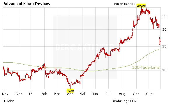 Die Prognose von AMD für das vierte Quartal konnte nicht mit den Erwartungen mithalten und ließ gewaltig enttäuschte Anleger zurück. Denn die schwache Prognose zeigt deutlich: Die AMD-Führung ist weniger zuversichtlich, dass das neu gefundene Wachstum im Chip-Bereich anhalten kann. Die schrumpfende Nachfrage im Krypto-Bereich bringt die GPU-Verkäufe weiter unter Druck. Hinzu kommt eine Schwächephase bei Semi-Custom-Chips, diese Halbleiter werden insbesondere in Konsolen verbaut und dürften angesichts des fortgelaufenen Konsolenzyklus weniger nachgefragt werden.