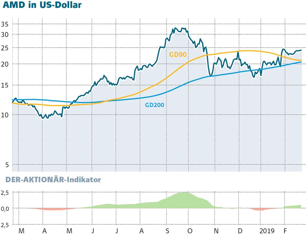 DER AKTIONÄR hält dieses Szenario für wahrscheinlich und hat in Ausgabe 07/19 die AMD-Aktie wieder zum Kauf empfohlen. Wer der Empfehlung gefolgt ist, bleibt dabei und folgt weiter dem Aufwärtstrend.
