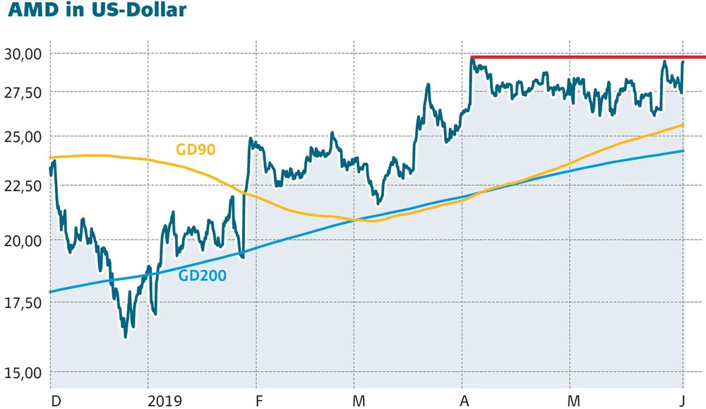 Für die Aktie von AMD geht es unaufhaltsam weiter nach vorne. Am heutigen Montag treibt die Aktie ein mehrjähriger Lizenzdeal mit Samsung Electronics an. Die Grafik-Prozessoren von AMD sollen künftig Smartphones und Tablets antreiben – ein Millionengeschäft für AMD.