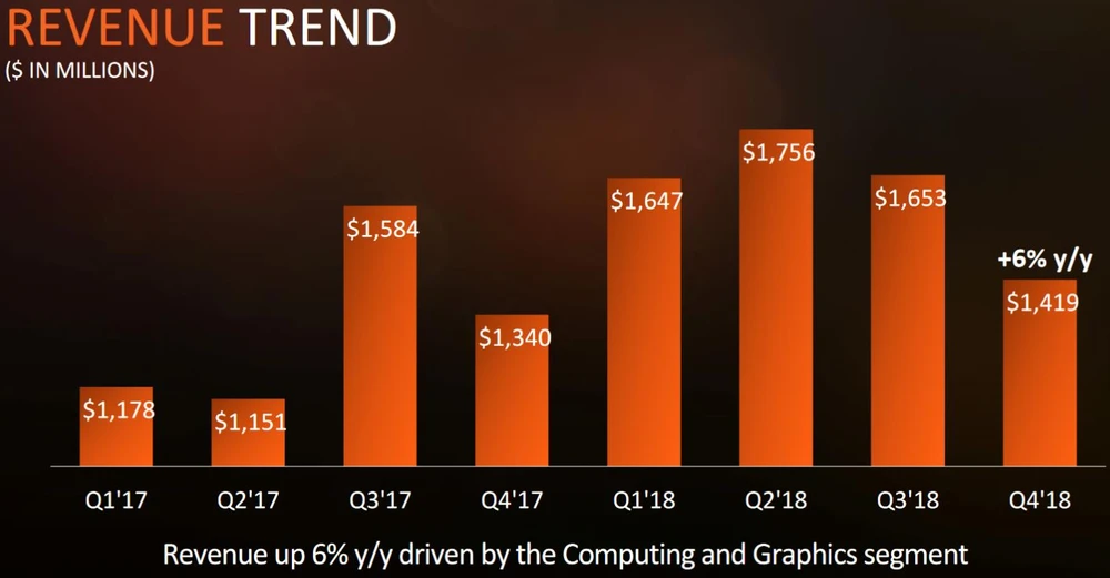 AMD erzielte im vierten Quartal einen Umsatz von 1,42 Milliarden Dollar bei einem Gewinn je Aktie von 0,08 Dollar. Damit lag der Chip-Konzern leicht hinter den Erwartungen der Analysten von 1,44 Milliarden Dollar Umsatz und 0,08 Dollar Gewinn je Aktie zurück.