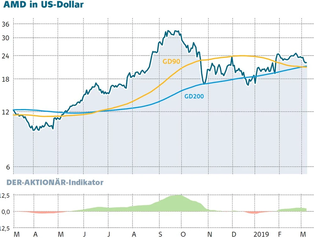 Kann AMD diesen Trend weiter Aufrecht erhalten, sollte die Aktie folgen. Die AKTIONÄR-Empfehlung lässt in den vergangenen Tagen zwar etwas Federn – jedoch ist dies zu großen Teilen den unsicheren Aussichten auf dem Gesamtmarkt geschuldet. Sinkende Wafer-Preise, Verschiebungen von Investitionen in neue Anlagen und fallende Speicher-Preise treffen AMD jedoch nur bedingt. Denn die Umsatzzuwächse des AKTIONÄR-Favoriten stammen weniger aus dem wachsenden PC- und Server-Gesamtmarkt, sondern aus der Rückgewinnung von Marktanteilen.