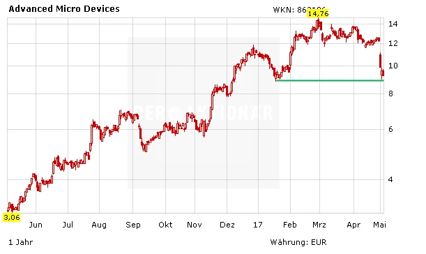 Hohes Volumen – hochvolatil. Die Aktie von AMD verzeichnete die größten Verluste der vergangenen zwölf Jahre. Auch zum heutigen US-Handelsstart geht es um rund drei Prozent bergab. Eine bloße Korrektur, oder ist der Traum vom Turnaround tatsächlich geplatzt?