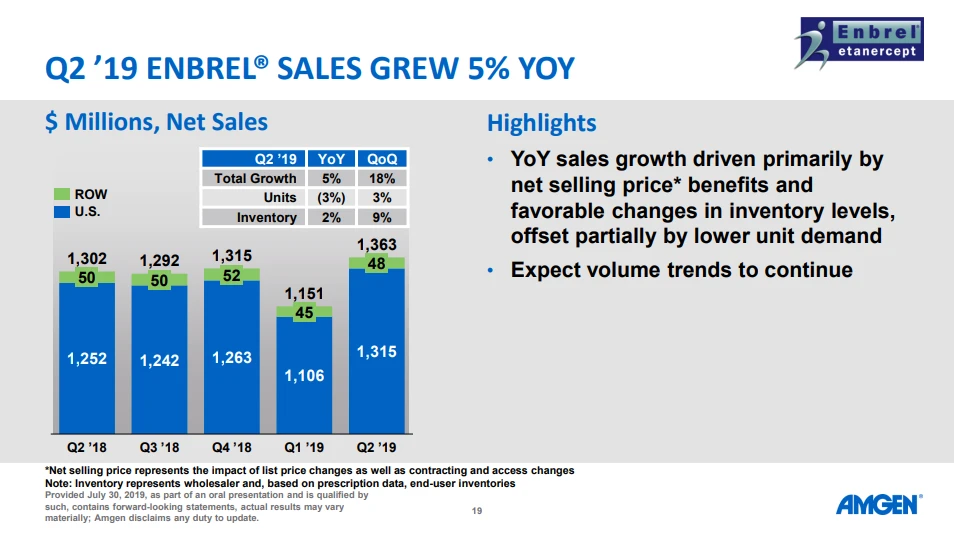 Grund für den Streit ist das Biosimilar Erelzi, das die Novartis-Tochter Sandoz an den Markt bringen will. Dabei handelt es sich um ein Referenzprodukt zu Amgens Enbrel mit dem Wirkstoff Ethanercept. Das Medikament ist ein Kassenschlager des US-Konzerns und spülte im zweiten Quartal 2019 mehr als 1,3 Milliarden Dollar in dessen Kassen. Bis 2029 hält Amgen Exklusivschutz für das Medikament, welches zur Behandlung rheumatischer Erkrankungen und Schuppenflechte (Psoriasis) eingesetzt wird.