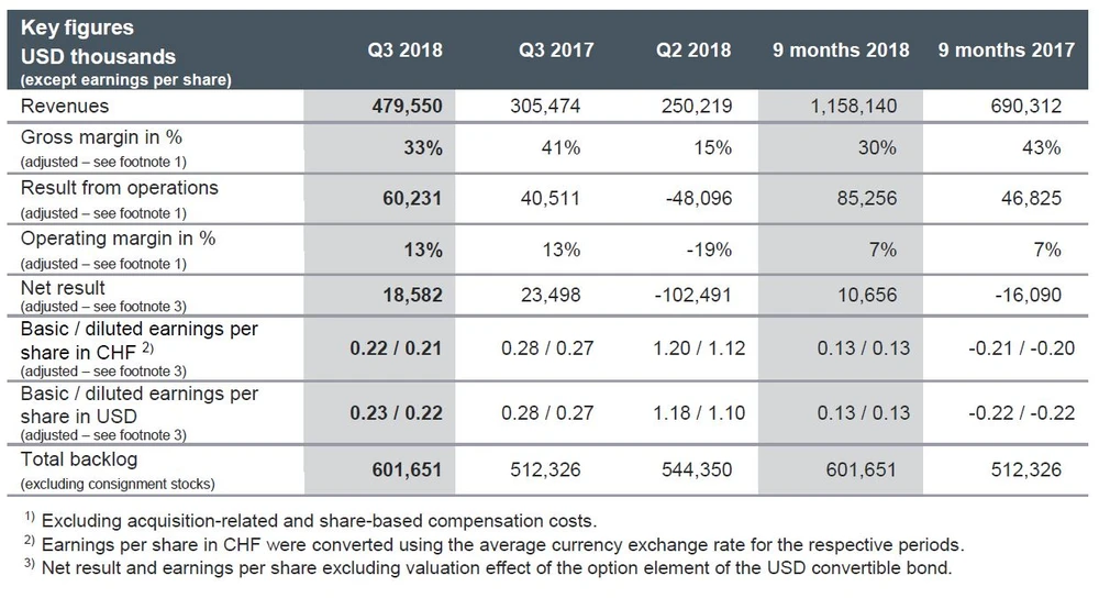 Bereits im zweiten Quartal verzeichnete AMS eine Umsatzdelle, nachdem es bei Apple einen Modellwechsel beim iPhone gab. AMS stellt 3D-Kamerasensoren her, die unter anderem für Face-ID verwendet werden. Verglichen mit dem saisonal schwachen zweiten Quartal hat AMS im abgelaufenen dritten Quartal den Umsatz sogar verdoppelt. Das EBIT kletterte um 48 Prozent auf 60,2 Millionen Dollar. Hier die Zahlen im Detail: