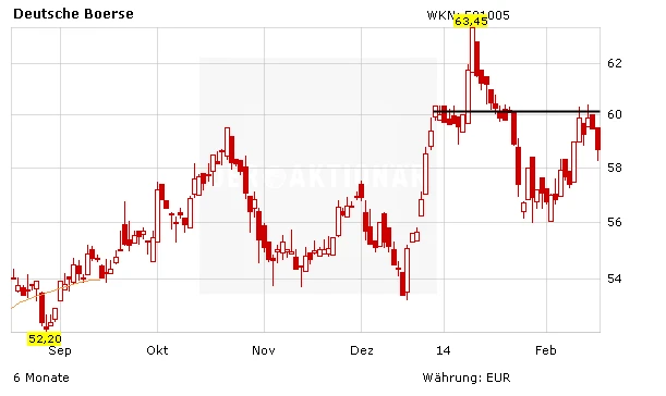 Am Dienstag war das Papier der Deutschen Börse Topverlierer im DAX. Anleger halten sich vor der Bekanntgabe der Zahlen am Mittwochabend zurück. Auch die Bestätigung der Verkaufen-Empfehlung durch Equinet belastet. Analyst Häßler sieht die Gefahr, dass der Ausblick auf 2014 negativ überraschen könnte.