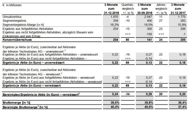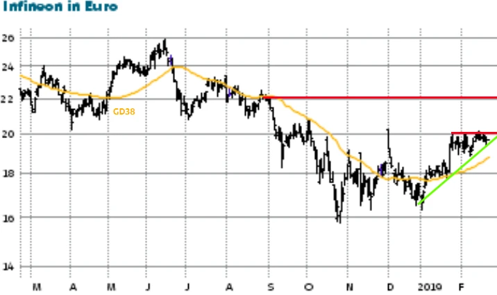 Doch damit nicht genug: „Die Angst vor sinkender Nachfrage und wachsenden Lagerbeständen, die die ganze Branche umtreibt, trifft jetzt auch Infineon“, merkte Golinski an. Die Absatzschwäche bei Autos und Smartphones hatte im ersten Quartal des laufenden Geschäftsjahres zu einem Rückgang bei Umsatz und Ergebnis geführt.