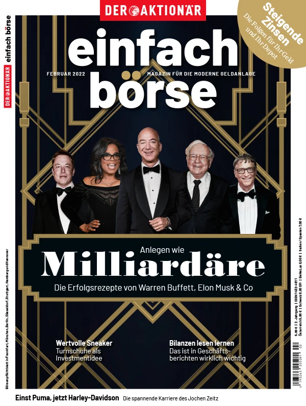 Ob Elon Musk, Warren Buffett oder auch Jeff Bezos, milliardenschwer sind sie alle – doch was ist ihr Erfolgsgeheimnis? Erfahren Sie in der neuen Ausgabe von einfach börse, wie Sie Ihr Geld anlegen wie die Milliardäre.