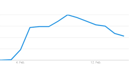 Wichtige Grafik: Laut Google Trends hat das weltweite Interesse an den Spiel am 9. Februar das vorläufige Hoch erreicht - und seit dem wieder abgenommen. Vorsichtige Neueinsteiger in die EA-Aktie warten nun ab, ob die Euphorie der Spieler nachhaltig hoch bleibt oder weiter abflaut.