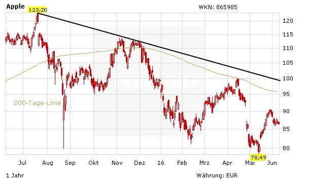 Mit geringeren Abgaben macht sich Apple für die Entwickler wieder attraktiver. Allerdings sinkt die Marge im App Store. Der Abwärtstrend ist bei der Aktie aber nach wie vor intakt. Zudem ist die Rückeroberung der 200-Tage-Linie erneut gescheitert. Trotz der günstigen Bewertung fehlen damit operative und charttechnische Impulse für einen Neueinstieg. Investierte Anleger beachten den Stoppkurs bei 77 Euro.