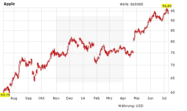 Sollte sich dieses Gerücht bewahrheiten dürfte es wohl nur eine Frage der Zeit sein, bis die Apple-Aktie die Marke von 100 Dollar zurückerobert. DER AKTIONÄR ist weiterhin optimistisch, was die Entwicklung des Papiers angeht und halt an seinem Kursziel von 128 Dollar oder umgerechnet 94 Euro fest. Zur Absicherung sollte ein Stopp bei 52 Euro platziert werden.