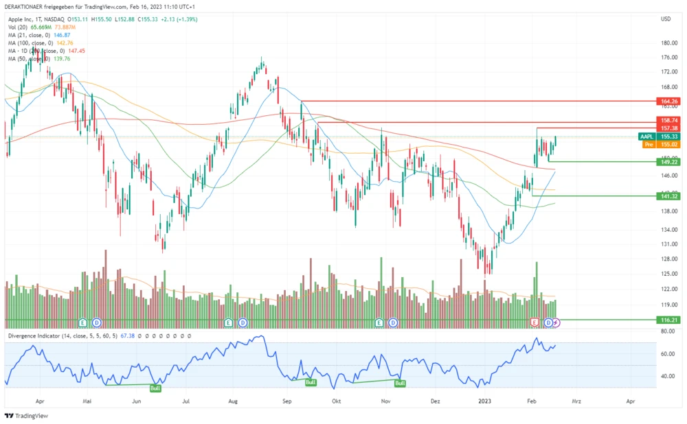 Die aktuelle Handelswoche verläuft freundlich und das obwohl die US-Inflationszahlen zwar weiter in die richtige Richtung tendieren, aber schwächer als erwartet ausfielen. Die Apple-Aktie bleibt unbeeindruckt und die Bullen geben weiter Gas. Bei dem Tech-Giganten bahnt sich nun eine weitere Bewegung an.