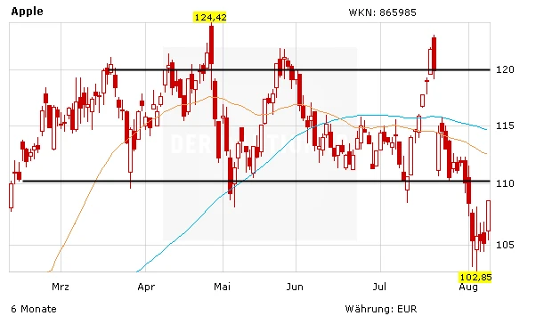 DER AKTIONÄR hält an seiner Halten-Empfehlung fest. Noch ist die charttechnische Trendwende jedoch nicht vollzogen. Der Mini-Crash nach enttäuschenden iPhone-Verkaufszahlen im letzten Quartal (47,5 statt 49 Millionen) ist trotz der jüngsten Gegengewegung noch nicht verdaut. Der Ausbruch auf ein neues Hoch steht weiterhin aus.