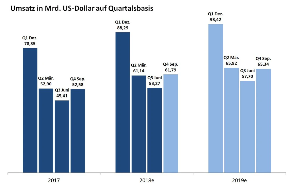 Wenn Apple am 1. Novmeber die Zahlen für das abgelaufene Quartal bekannt gibt, ist eines klar. Traditionell ist das Septemberquartal vom Niveau her auf Höhe des Märzquartals. Entsprechend liegen die Erwartungen auch in der Nähe der Daten der ersten drei Monate des Jahres.