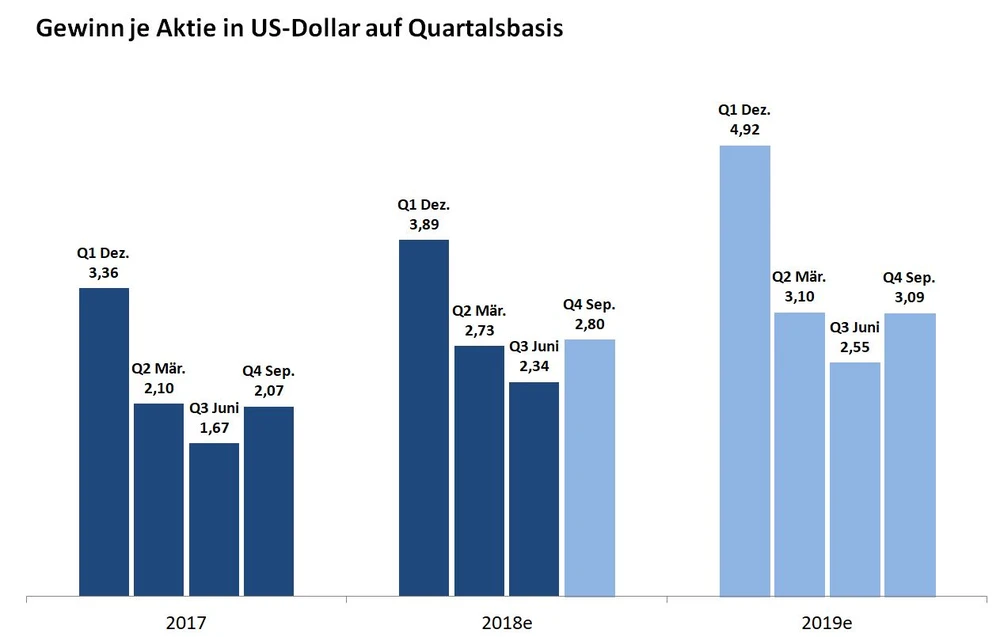 Die Erwartungen bei Umsatz und Gewinn je Aktie sind folgende: