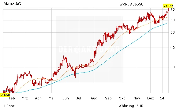 Manz ist eine der in Ausgabe 44/2013 vorgestellten "Sieger-Aktien". Denn der Maschinenbauer ist eine Wachstumsmaschine. Seit 2009 lag das durchschnittliche Umsatzwachstum bei starken 40 Prozent.