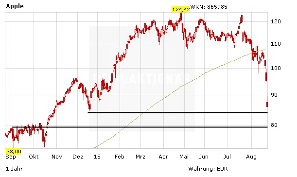 Sollte Apple tatsächlich ein eigenes Auto bauen wäre das ein echter Paukenschlag. Doch kurzfristig steht die Vorstellung des neuen iPhones, die wohl am 9. September stattfinden soll, im Fokus. Die Apple-Aktie geriet in den letzten Tagen in einem sehr schwachen Marktumfeld unter Druck. Der Titel verlor auf Wochenbasis sieben Prozent. Aufgrund des intakten kurzfristigen Abwärtstrends halten sich Neueinsteiger zurück. Auch wenn die langfristigen Aussichten weiterhin gut sind, beachten investierte Anleger den Stoppkurs bei 93 Euro.