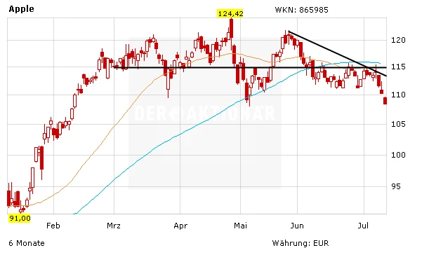 Die Apple-Aktie ist in den letzten Handelstagen mit fünf Prozent deutlich nach unten gerutscht. Gründe dafür gibt es einige. Der Aktien-Crash in China könnte einigen Analysten zufolge zu einer Kaufzurückhaltung von chinesischen Kunden führen. Hinzu kommt, dass die Nachfrage nach der Apple Watch offenbar an Fahrt verliert und weit von den anfänglich sehr optimistischen Prognosen entfernt ist. Analysten haben in den letzten Tagen im Schnitt um immerhin zwei Prozent ihre Gewinnprognosen für das laufende Jahr gesenkt.