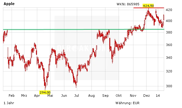 Ob es kurzfristig sogar zu mehr reicht, hängt davon ab, ob Apple die Investoren mit den Q4-Zahlen überraschen kann. Analysten rechnen für die Periode mit einem Umsatzanstieg von 5,3 Prozent auf 57,4 Milliarden Dollar und einem kleinen Plus beim Gewinn je Aktie auf 14,08 Dollar.