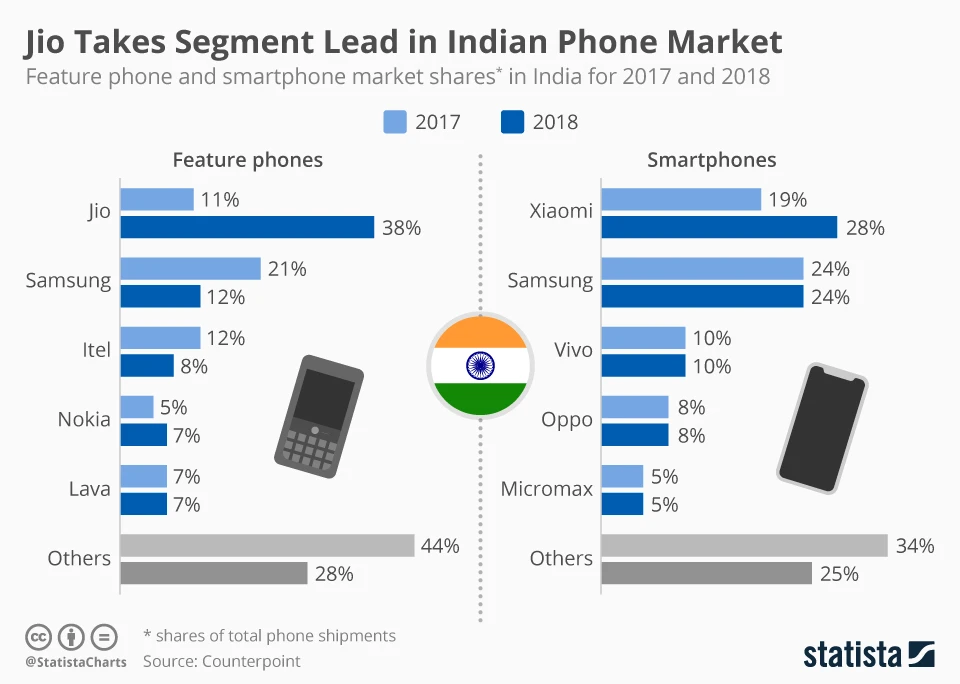 Für Apple ist das insofern wichtig, da man bei Smartphones im indischen Markt lediglich unter "Sonstige" beim Marktanteil vorkommt. Warum Apple als Platzhirsch bei Premium-Smartphones ausgerechnet im am schnellsten wachsenden Markt bis dato keinen Fuß in die Tür brachte, lässt sich schwer nachvollziehen. Experten sehen den Grund in fehlenden eigenen Flagship-Stores in Indien. Apple's dort aktiven Partner-Stores wird ein lausiger Service nachgesagt, was wiederum die Marke Apple beeinträchtigt. In einer Umfrage von RedQuanta, die die Bereitschaft der Kunden misst, Produkte oder Dienstleistungen anderen Nutzern zu empfehlen, wurde Apple mit einem Score von - 22, einem der niedrigsten der Branche gerankt.