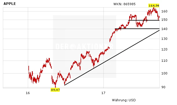 Durch den negativen Kommentar geriet die Apple-Aktie leicht unter Druck und büßte rund 0,7 Prozent ein. Die vom AKTIONÄR angesprochene Trading-Chance ist damit keineswegs vom Tisch. Erst unter der breiten Unterstützungszone im Bereich von 150 Dollar sollten investierte Trader wieder die Reißleine ziehen.