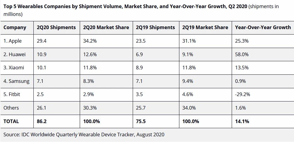 Nach Angaben von IDC hat Apple im zweiten Quartal 29,4 Millionen Wearables verkauft. Diese setzen sich zusammen aus knapp 23,7 Millionen drahtlosten Kopfhörern und rund 5,8 Apple-Watch-Geräten.