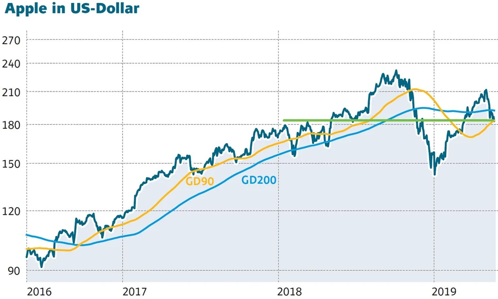 DER AKTIONÄR meint: Anleger meiden die Apple-Aktie angesichts der jüngsten Entwicklungen. Der Kurs hat die 200-Tage-Linie unterschritten und setzt derzeit auf die 90-Tage-Linie bei knapp über 180 Dollar auf. Sollte der Kurs nicht bald wieder nach oben drehen, würden die Tiefs vom Jahreswechsel in den Blickpunkt rücken. Beobachten!