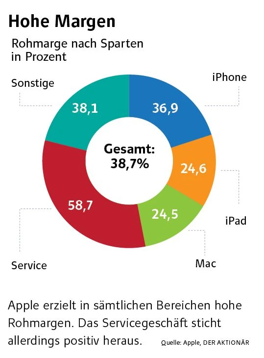 Unterschätztes PotenzialEntsprechend haben sich auch erste Analysten hervorgewagt, die 80 Prozent des Apple-Kurses durch das Service-Business abgedeckt sehen.
